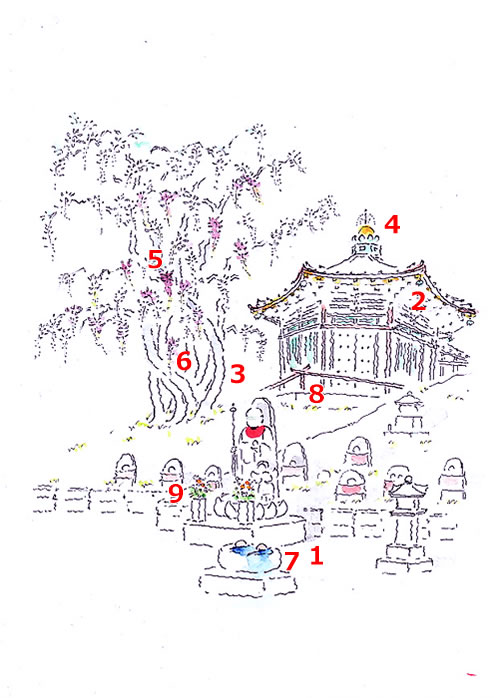 4.南円堂、藤、お地蔵様のあたりをつける。